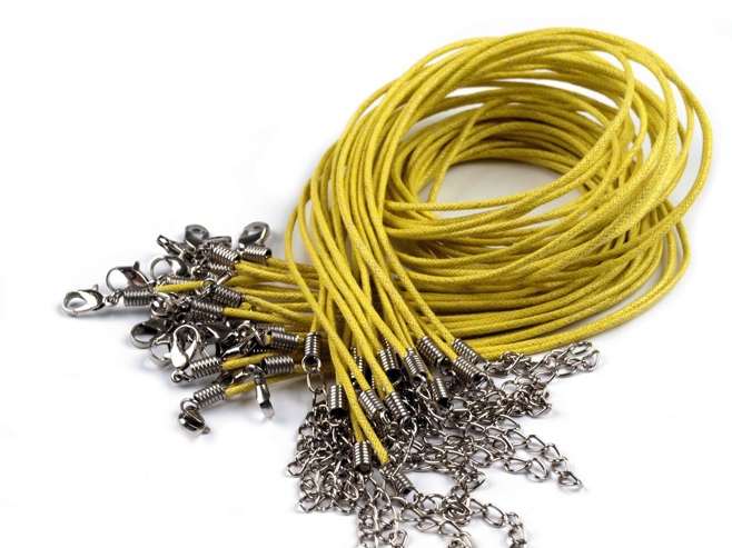 - Bavlněná šňůrka s karabinkou voskovaná délka 45cm, mix odstínů žluté / balení 10 ks