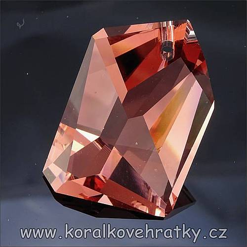 - Broušené sklo, nepravidelný kámen, cca. 30x19x12mm, barva růže, český výrobce