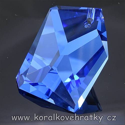 - Broušené sklo, nepravidelný kámen, cca. 30x19x12mm, barva safíru, český výrobce