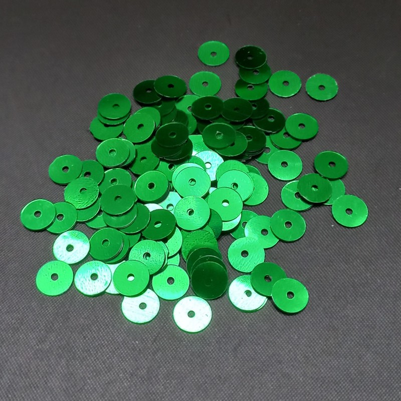 Flitr metalický hladký 6mm, 5g zelený/ 6 sáčků po 10 g