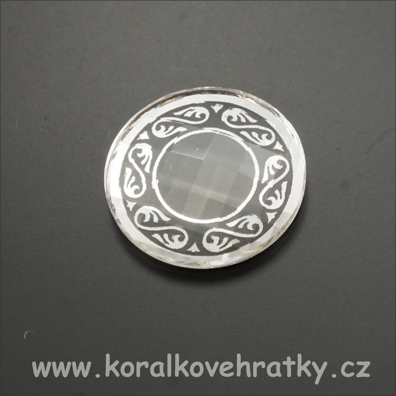 Kabošon, sklo fasetovaný s motivem, 14mm, barva čirá s motivem/ balení 25 ks