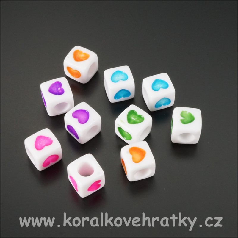 - Korálek kostka se srdíčky, mezikus, plast, 7mm, (balení 90ks)