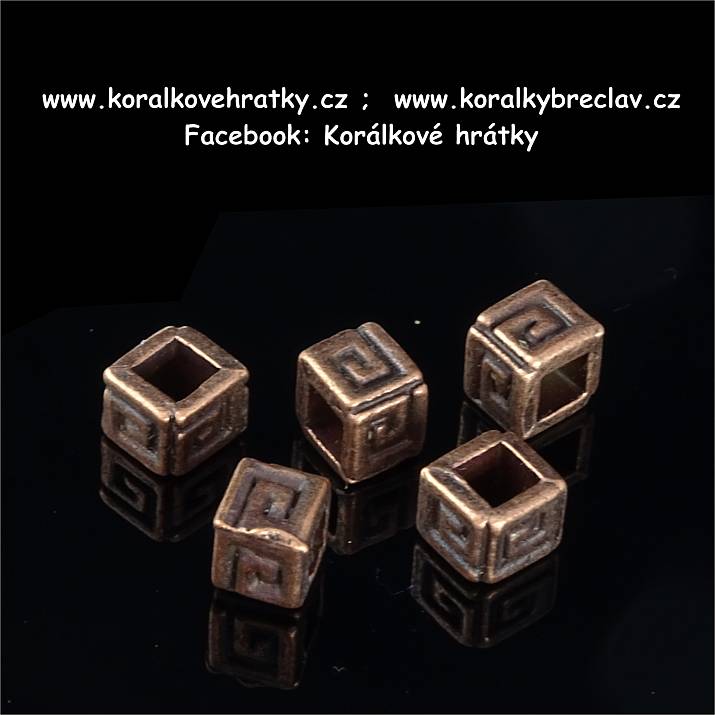 - Korálek, mezikus, kov, 5x5x4mm, barva staroměď (balení 100 ks)