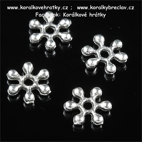 - Korálek, mezikus kytička, kov, 7mm, barva mix platina/ stříbro (balení 100 ks)