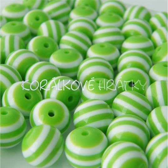 - Korálek plastový zelenobílé proužky cca 8 mm/ balení 100 ks