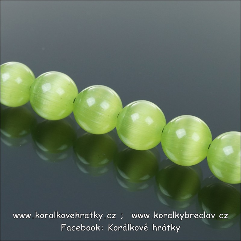 Korálky mačkané tzv. kočičí oči, jsou velmi lesklé díky své struktůře a vytvářejí tak efekt kočíčího oka.