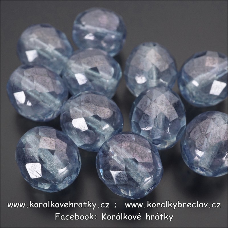 Korálky, ohňovka, sklo, 10mm, barva čirá s modrým listrem ( balení 640 ks )