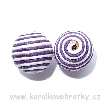 - Korálky omotávané šňůrkou, pruh bílá-fialová, cca. 18mm (balení 4ks)