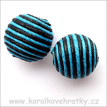 - Korálky omotávané šňůrkou, pruh černá modrá, cca. 18mm (balení 6 ks)