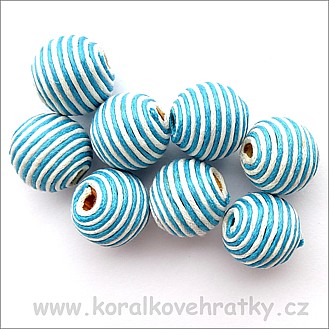 - Korálky omotávané šňůrkou, pruh tyrkysová-bílá, cca. 18mm / balení 5 ks