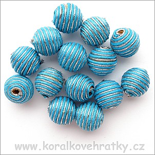- Korálky omotávané šňůrkou, pruh tyrkysová-stříbrná, cca. 18mm / balení 5 ks