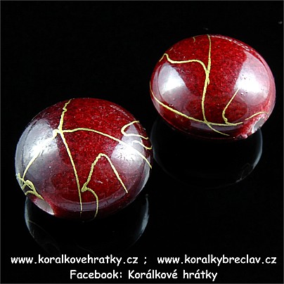 - Korálky, plast, 18mm, barva vínová cákaná (balení 20 ks)