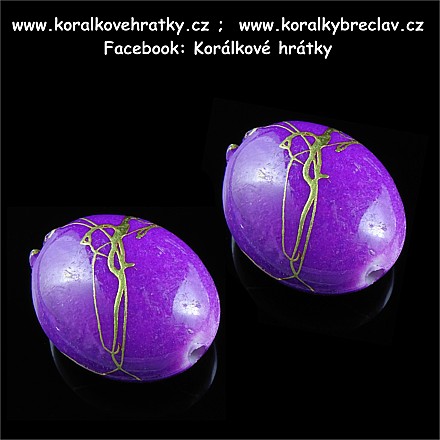 - Korálky, plast, 25x20mm, barva fialový cákaný (balení 20 ks)