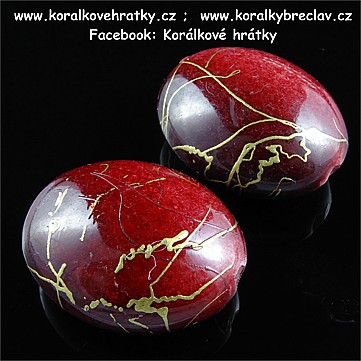 - Korálky, plast, 25x20mm, barva vínový cákaný (balení 2 ks)