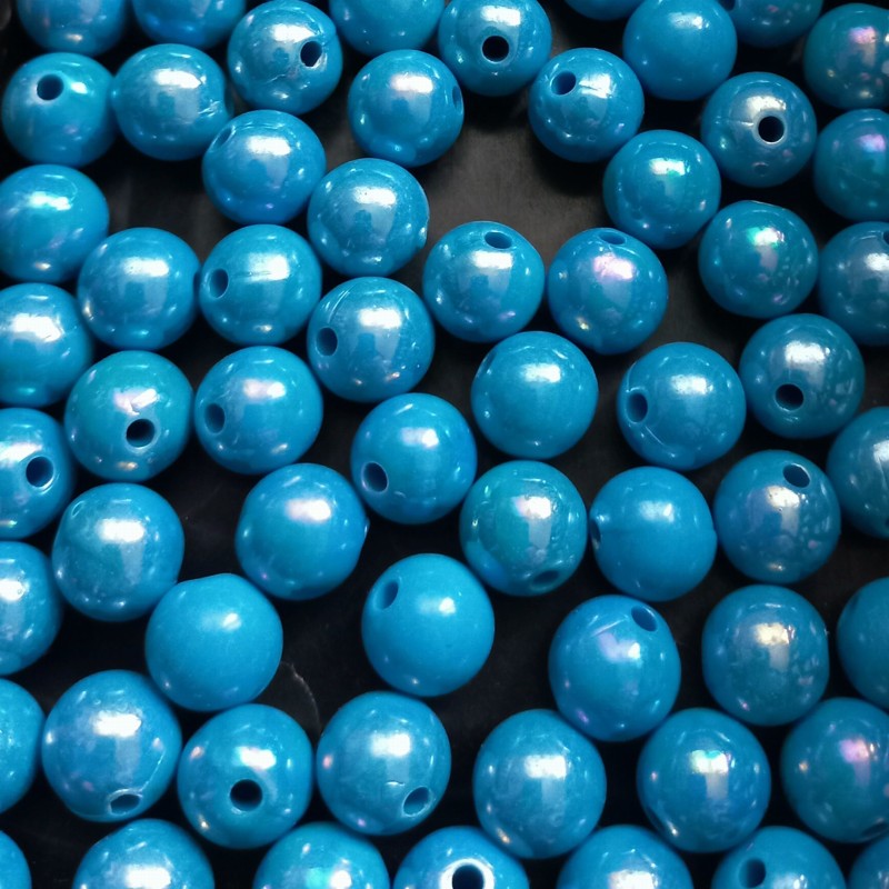 - Korálky plast kulička s efektem pokovu , 10mm - modrá / balení 102 ks