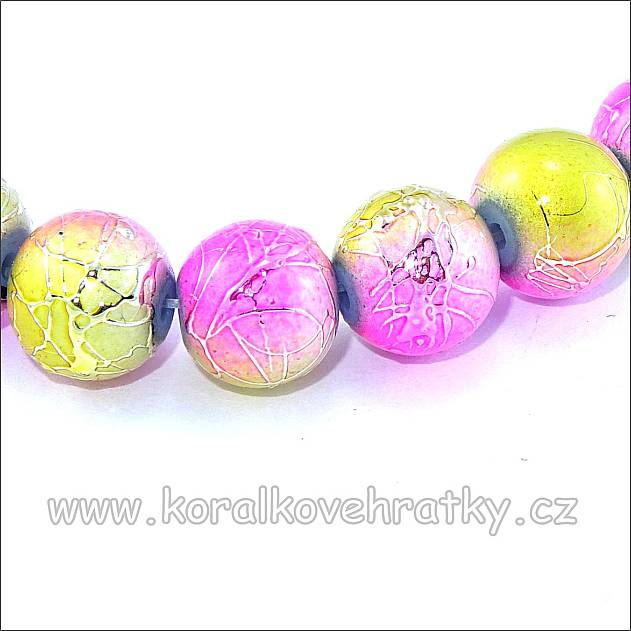 - Korálky, sklo, 12mm, cákaný dvoubarevný metalický, žlutorůžový, návlek cca 39 cm ( cca 34 ks ) / balení 2 návleky