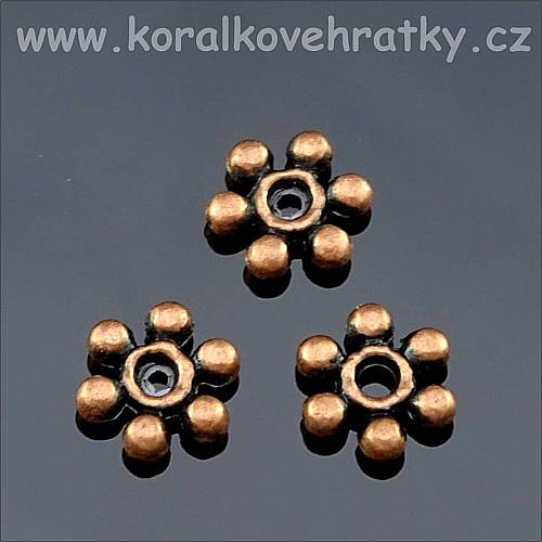 Mezikus kovový kvítek 6mm, barva staroměď (balení 100 ks)