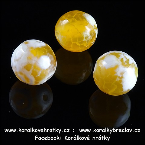Minerální korálky, 10 mm, Achát, fasetovaný, žluto-bílý ("pukaný") / balení 10 ksSkladem3,20 Kč/ ks2,64 Kč bez DPH