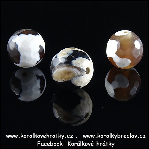 Minerální korálky, 10 mm, Achát "pukaný" faset. (č-b-h) / balení 20 ksSkladem2,15 Kč/ ks1,78 Kč bez DPH