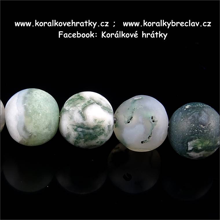 - Minerální korálky,10mm, Achát mechový, mat / balení 10 ks