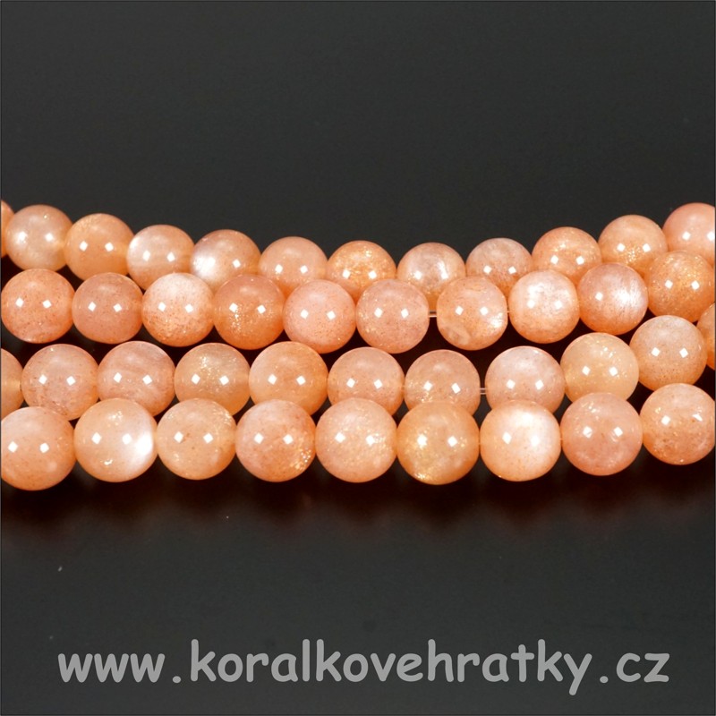 - Minerální korálky, cca 6-7 mm, Sluneční kámen/ balení 5 ks