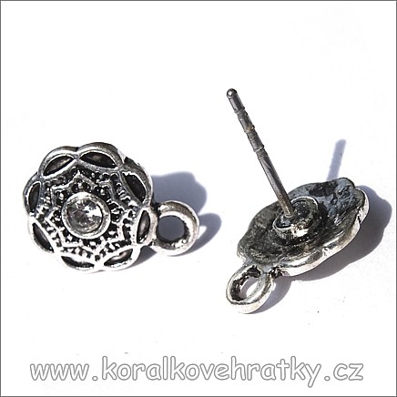 - Náušnice puzeta zdobená s čirým kamenem a očkem, 13x10 mm (balení 4 páry)