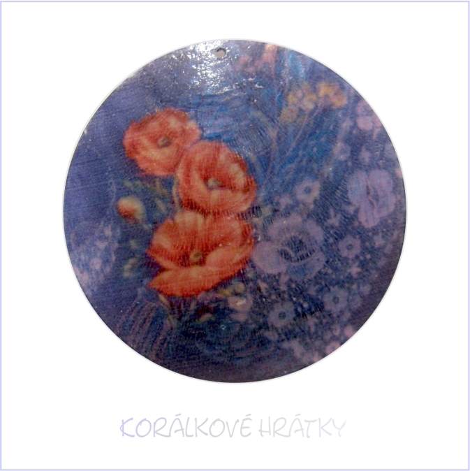 - Perleť malovaná - modrá s kytičkami / balení 3 ks