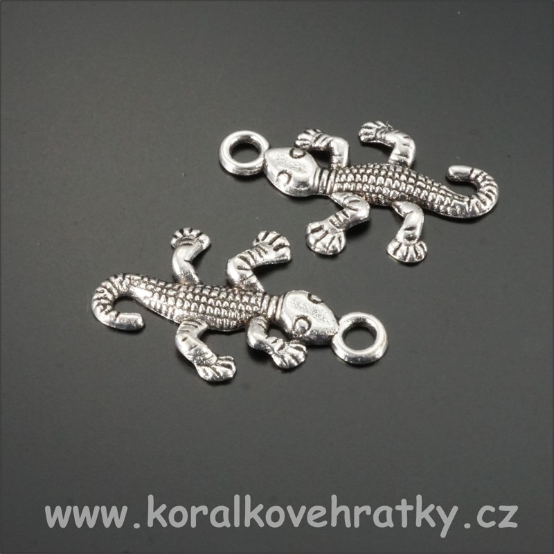 Přívěsek ještěrka, kov, 25x15mm, barva platina (balení 20 ks)