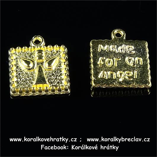 Přívěsek, kov, zhotoveno pro anděla, 15x13 mm, barva zlato (balení 22ks)