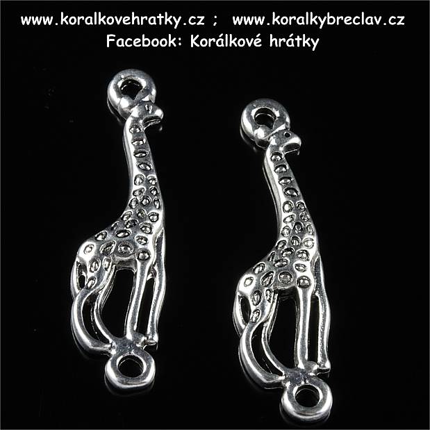 Přívěšek žirafa,31x10mm barva platina. Tento přívěšek je možné uchytit z obou stran díky očkům a proto je vhodný i na zhotovení náramků.