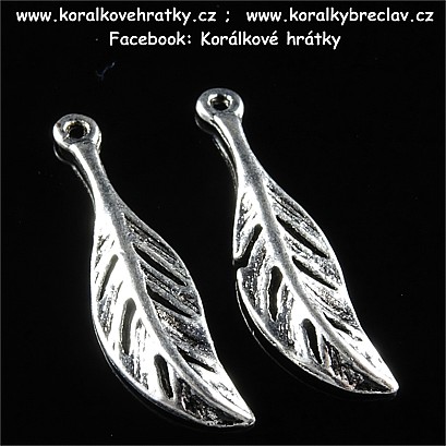 Přívěsek list, kov, 28x7 mm, barva starostříbro (balení 10 ks)Skladem1,30 Kč/ ks1,07 Kč bez DPH