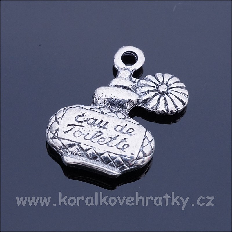 Přívěšek parfém 18x15mm, barva platina (balení 15 ks)