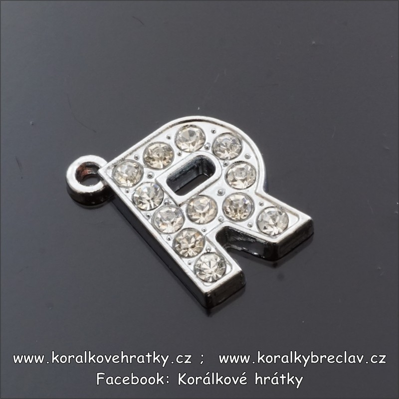 Přívěšek písmeno se šatony,výška 18mm, barva stříbrná, R ú balení 2 ks