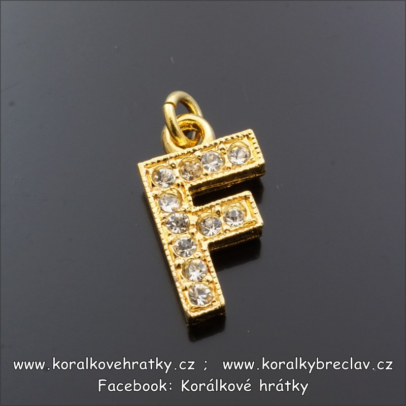 Přívěšek písmeno se šatony,výška 18mm, barva zlatá, F