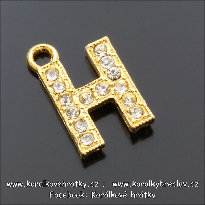 Přívěšek písmeno se šatony,výška 18mm, barva zlatá, H