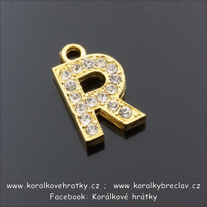 Přívěšek písmeno se šatony,výška 18mm, barva zlatá, R