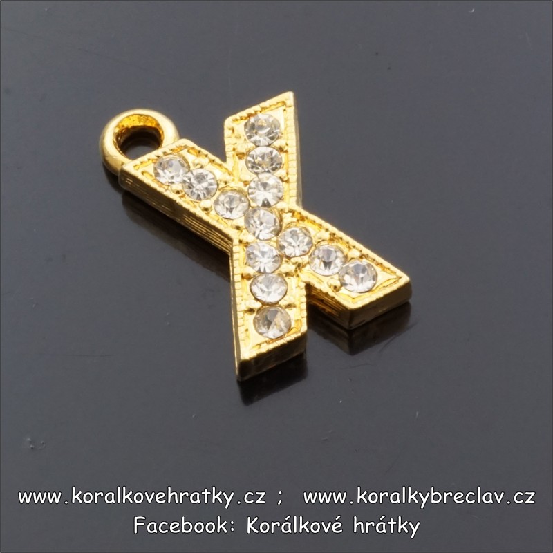 Přívěšek písmeno se šatony,výška 18mm, barva zlatá, X