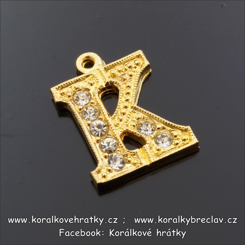 Přívěšek písmeno se šatony,výška 24mm, barva zlatá, K