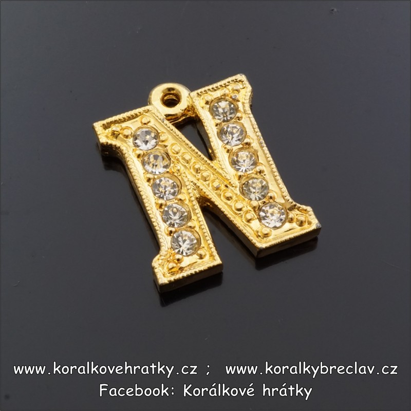 Přívěšek písmeno se šatony,výška 24mm, barva zlatá, N