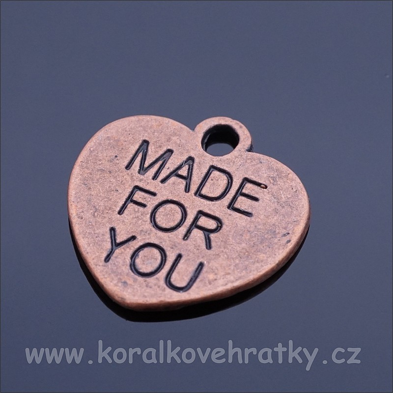 Přívěšek srdce MADE FOR YOU 15mm, barva staroměď (balení 20 ks)Skladem1,50 Kč/ ks1,24 Kč bez DPH