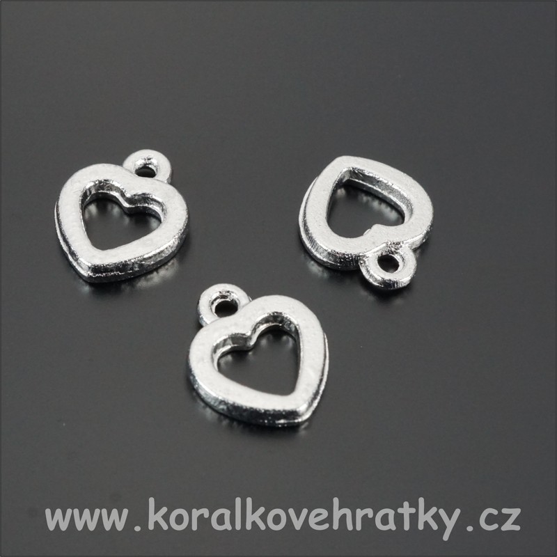 Přívěsek srdce, kov, 12x10mm, barva platina (balení 12 ks)