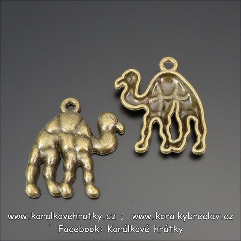 Přívěšek velbloud, kov, 23x18mm, barva staromosaz (balení 12ks)