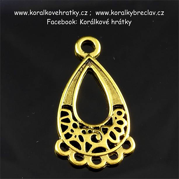 - Ramínko slza, kov, 28x15mm, 5 oček, barva zlata (balení 10ks)