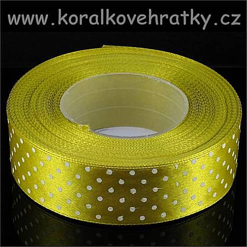 - Stuha saténová 12 mm s puntíky zelenožlutá ( balení 10 m )