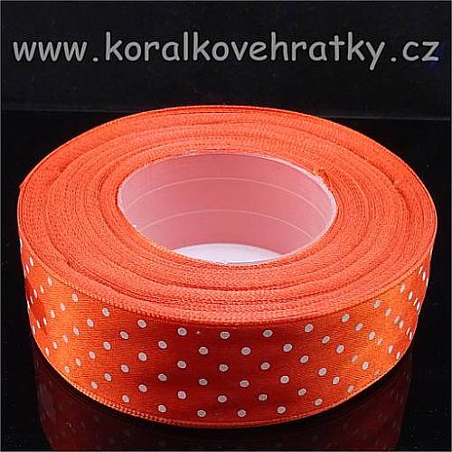 - Stuha saténová 25 mm s malými puntíky tm. oranžová (balení 22 m )