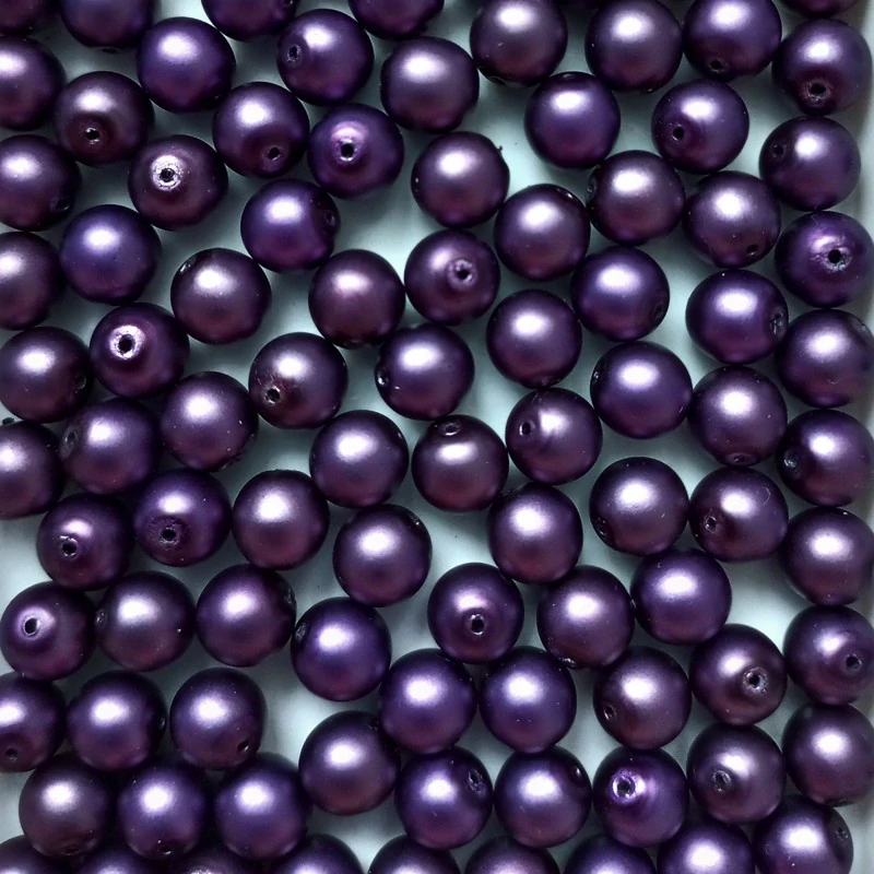 - Voskové perly, 8 mm, sklo, barva tm. fialová mat / balení 315 ks