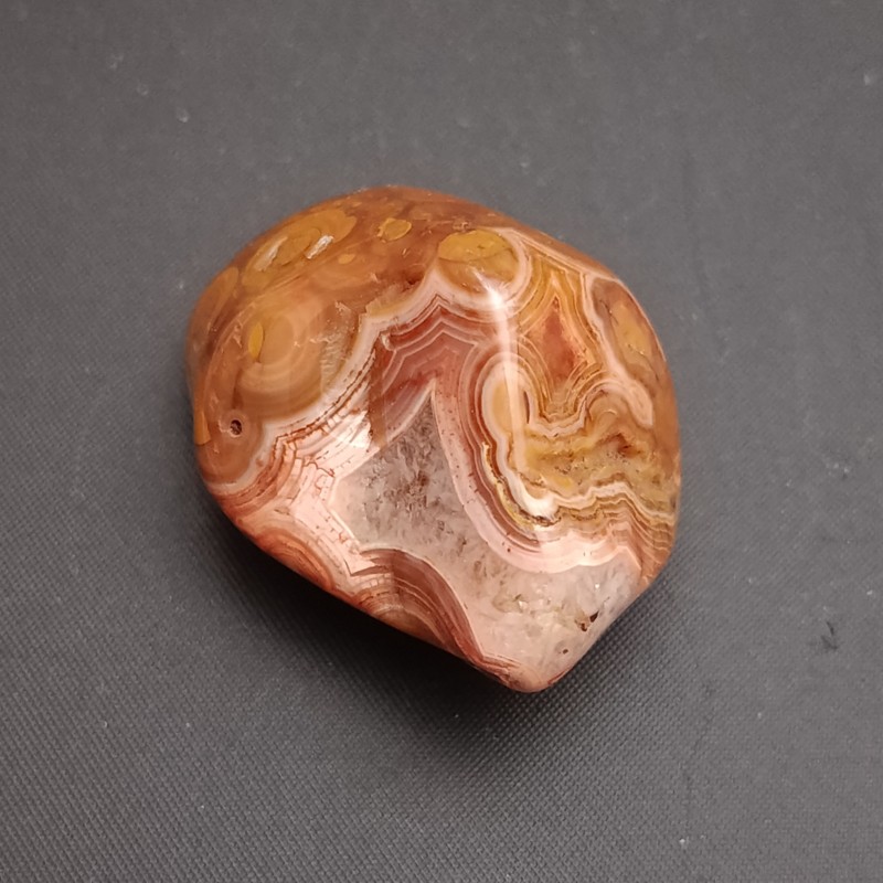 Jedná se tromlovaný kousek minerálu achátu peříčkového o velikosti cca 4x2,5 cm a hmotnosti cca 30g