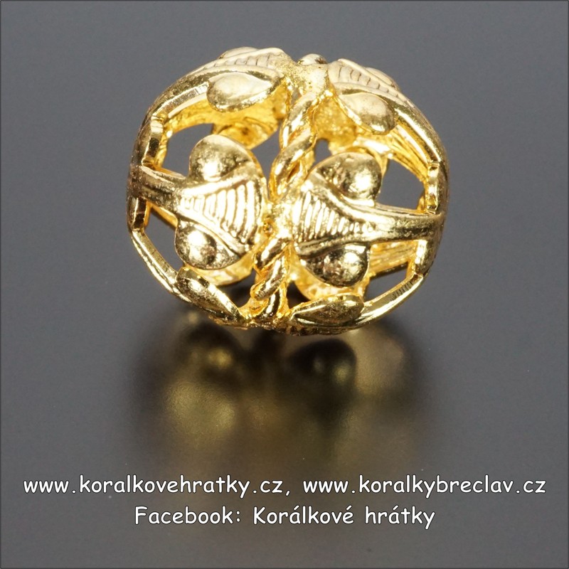 Korálek filigránový, kov, 17x16 mm, barva zlatá (balení 100 ks)