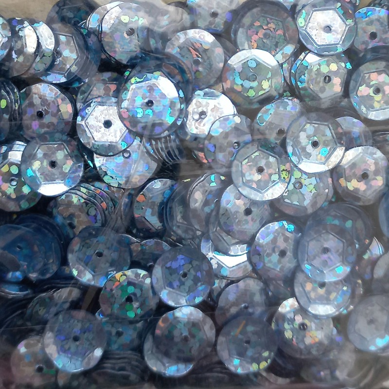 Flitr kulatý lomený, 8 mm, 15g sv. šedý s hologramem / balení 5 ks