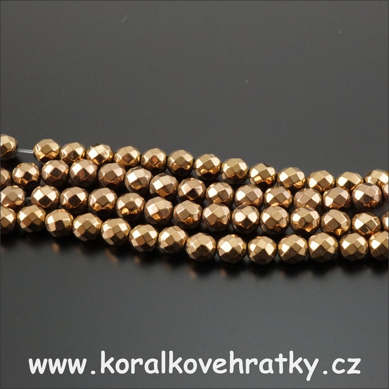Korálek HEMATIT fasetovaný, 6-7 mm, s pokovem v barvě světlé mědi